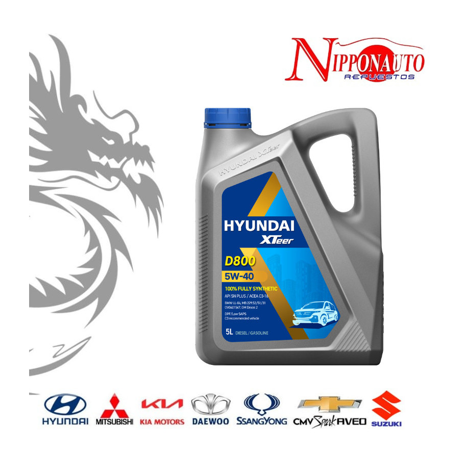 Aceite Hyundai XTeer 5W40 5L sintético diésel ACEA C3-12 de alto rendimiento. Lubricación superior, mayor limpieza del motor y máxima protección en todas las condiciones.